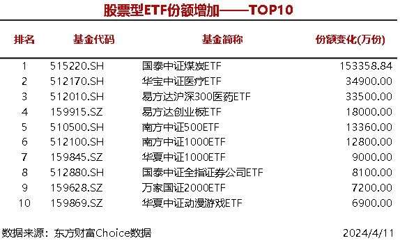 每经AI快讯杭州原油期货配资,据东方财富Choice数据统计,昨日共6只股票型ETF当日份额增加超1亿份,国泰中证煤炭ETF增加15.34亿份,华宝中证医疗ETF增加3.49亿份。