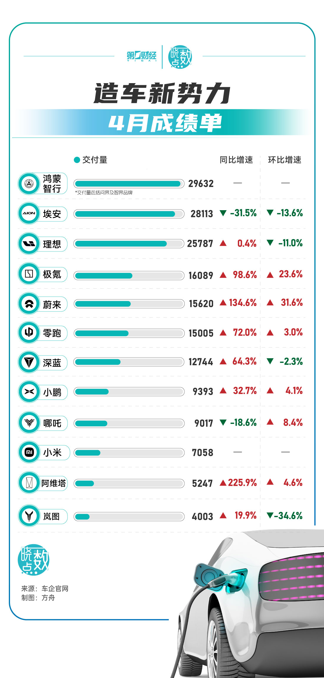 007配资平台 晓数点丨造车新势力4月成绩单出炉,小米SU7交付7058台
